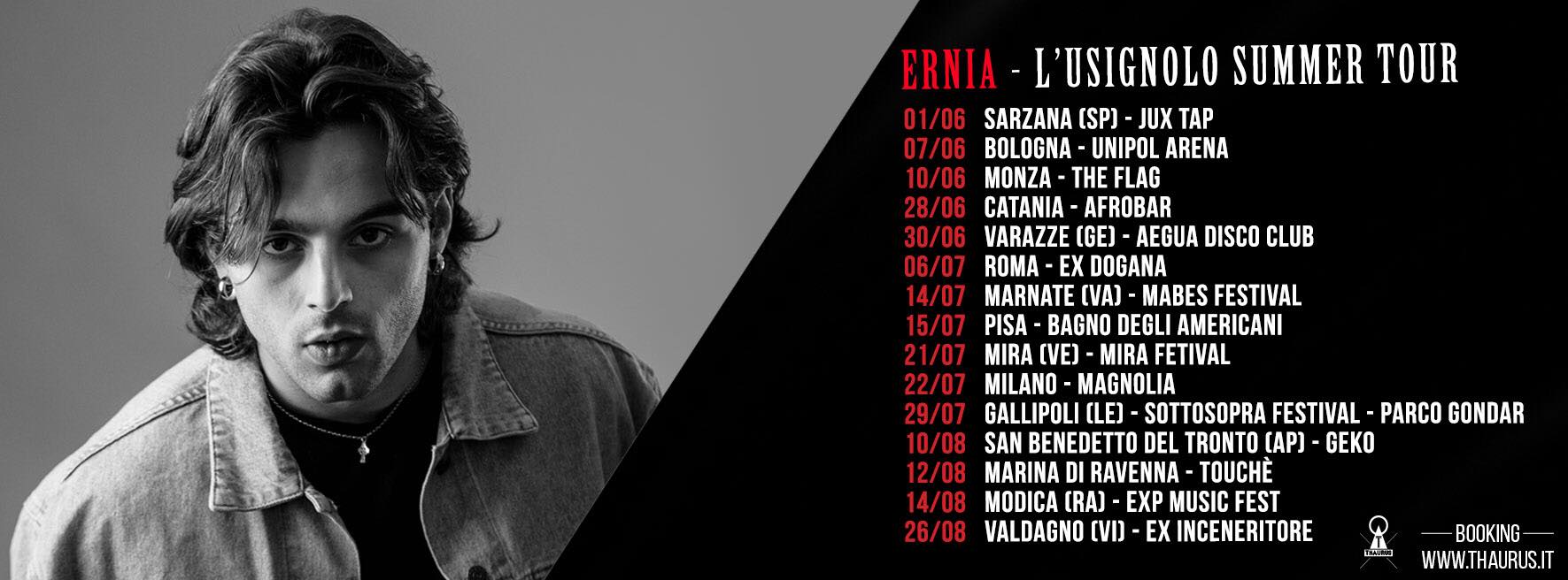 Dopo lo strepitoso successo del suo ultimo lavoro discografico, “Come uccidere un usignolo/67 tour”, il 7 dicembre Ernia, inizierà il tanto atteso tour. Il rapper sarà protagonista nei più prestigiosi club delle principali città italiane per tutto l’inverno.