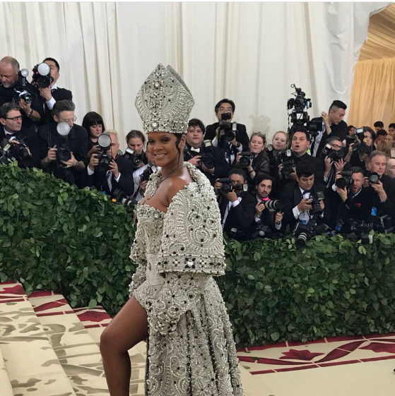 Il tema della serata rappresentava un intreccio tra religione e moda, alcune tra le star dell’evento hanno infatti optato per un look ispirato alle chiese, utilizzando broccati d’oro e d’argento indossati da Sarah Jessica Parker e Rihanna. L’abito di quest’ultima era tempestato da pietre preziose firmato Maison Margiela.
