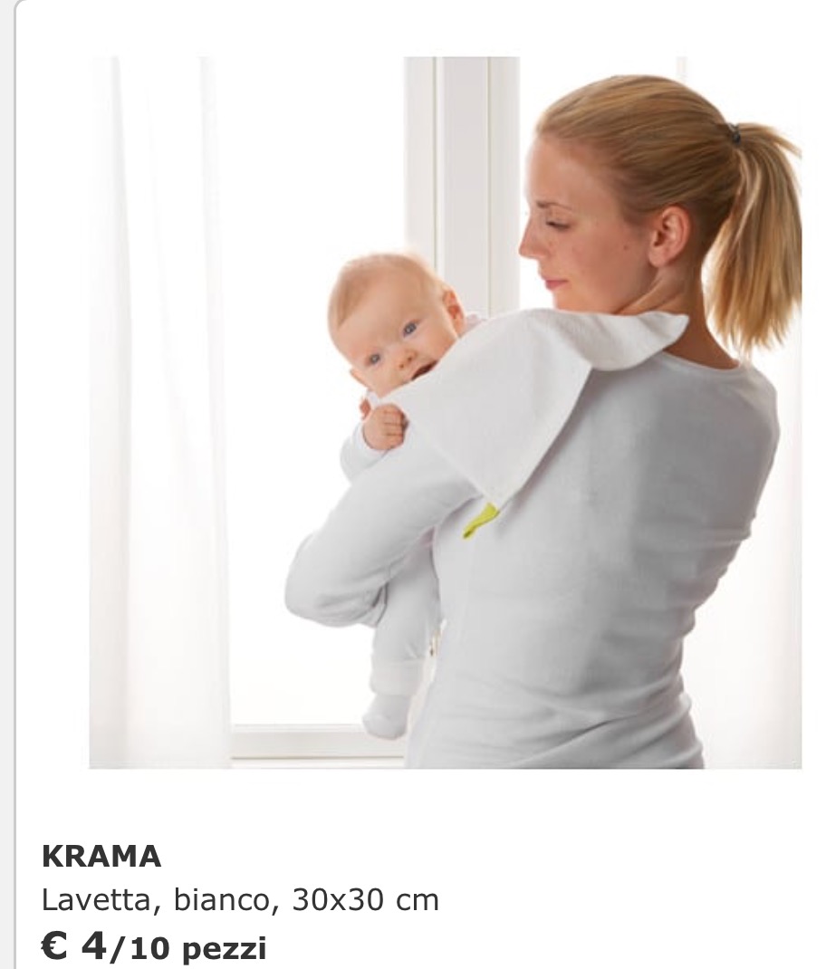 Le piccole traversine o asciugamani di Ikea servono per tantissime cose: asciugamani da usare dentro e fuori casa, proteggi spalle della mamma quando si ha in braccio il bebe’, asciuga tutto volanti etc. Assolutamente da comprare e da posizionare nel fasciatoio, in bagno, in cucina e nella borsa dei bimbi quando si esce.