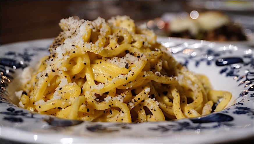Tanto calore e semplicità negli ambienti come nel menu che scalda il cuore e conquista il palato in un tripudio alla cucina abruzzese della nonna, “perché l’antico torna moderno”, nella proposta della tradizione gastronomica più reale e attuale di chef Fabio Baldassarre. Dalle Pallotte cacio e ova agli Arrosticini di pecora e di fegatelli, ai salumi e formaggi selezionati direttamente dai produttori locali dallo stesso chef come il salame di capra o i pecorini Farindola o quelli affinati nel fieno della Valle Roveto. Le paste sono tutte fatte in casa con farina di Luco de Marsi: dal Raviolone ripieno con ricotta ed erbette fresche su sughetto di pomodoro e pecorino agli Spaghettini alla chitarra con sugo di agnello, dall’Amatriciana al Ramen d’Abruzzo, alle immancabili Cacio e Pepe e Gricia, e ogni giorno tante specialità come le Crepes teramane in brodo o la Stracciatella in brodo di gallina.