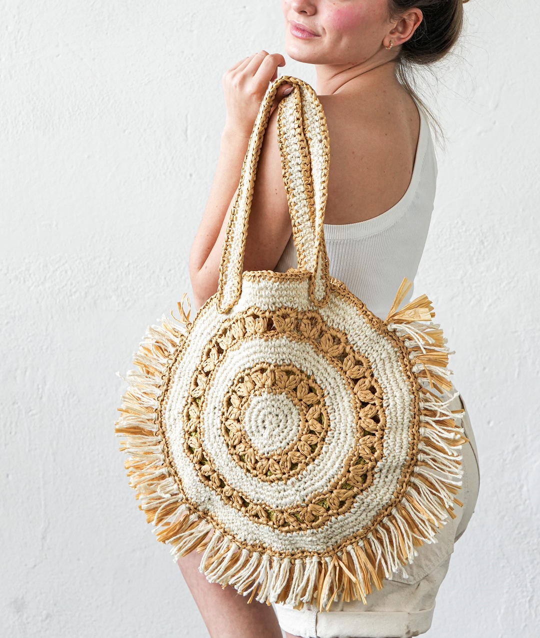 Un set perfetto per le vacanze a Portofino, o in qualche altra suggestiva località italiana! Borsa super capiente per contenere tutto ciò che serve, e un bellissimo cappello con una larga tesa per proteggersi dal sole dell’estate! Portofino Set è un kit uncinetto di livello intermedio, non tanto per la difficoltà dei punti, quanto per la particolare costruzione della borsa.