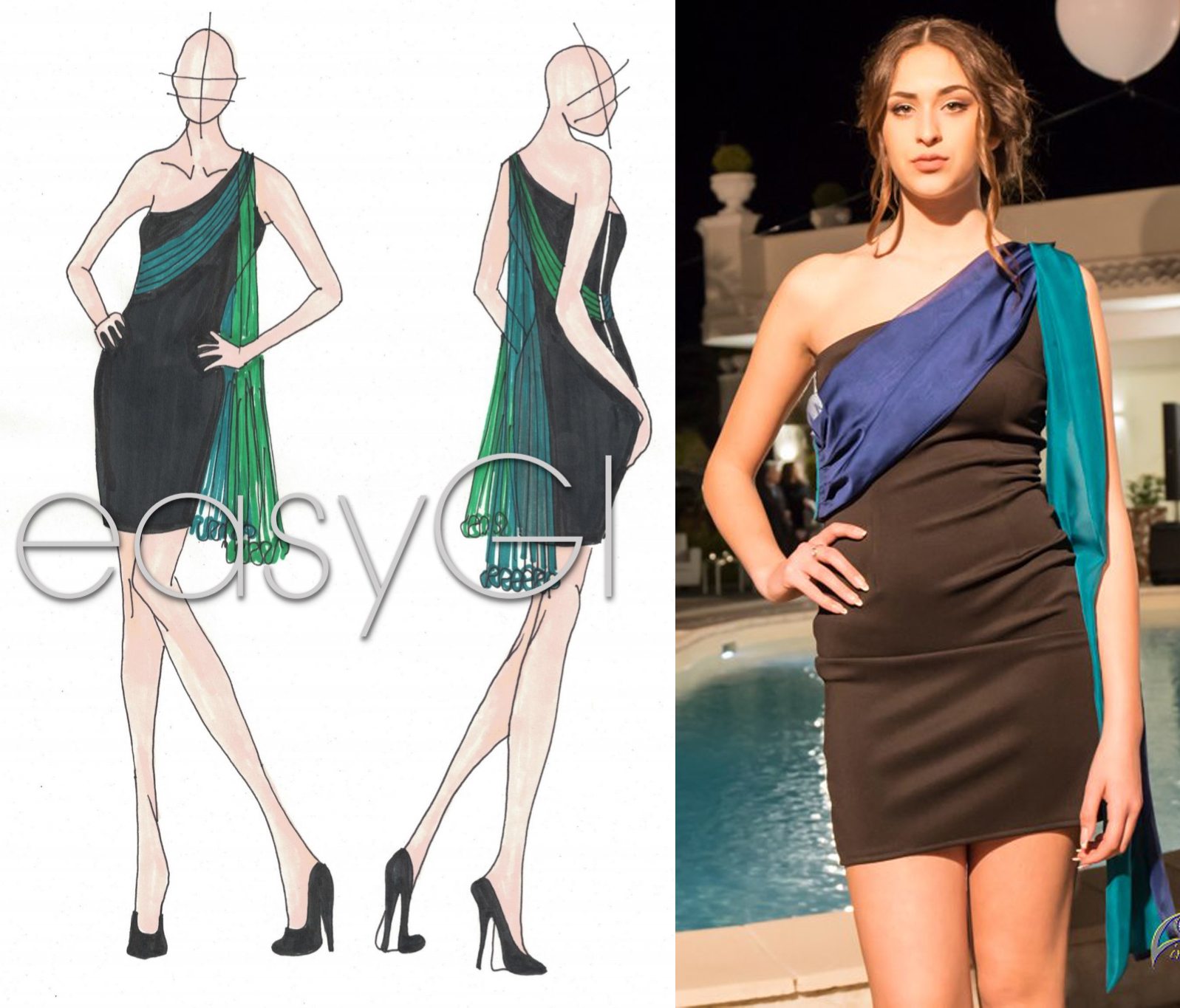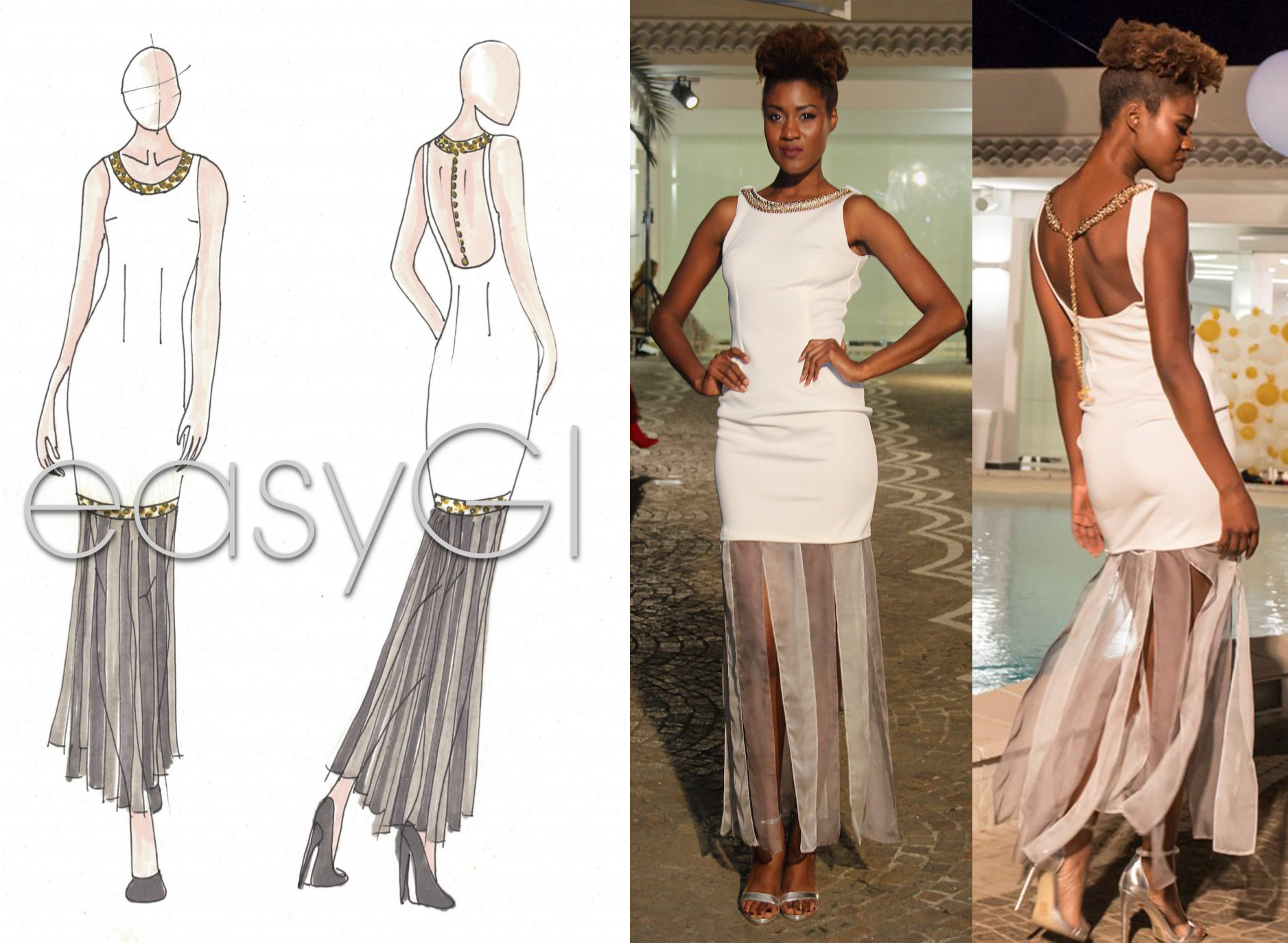 Ogni donna desidera un capo unico che valorizzi la sua femminilità e sensualità. I modelli easyGI sono pensati proprio per questo”, afferma la stilista Giorgia Martinoli, “gli abiti di easyGI si modificano per valorizzare le forme di ogni donna e sono sempre unici. Ognuno di essi è corredato di accessori che trasformano il look a seconda dell’occasione o anche in funzione dell’umore del momento. Uno studio accurato e minuzioso di piccoli “meccanismi” permette una facile e veloce riconfigurazione del look”.