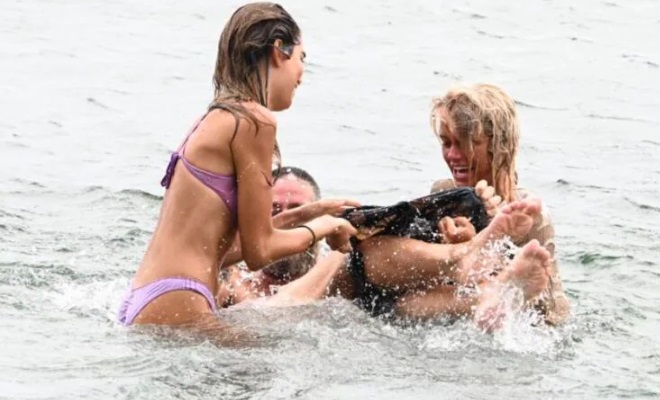 Poco dopo la naufraga ha pensato di vendicarsi, insieme a Estefania Bernal ha chiesto ad Edoardo di fare un bagno. Mentre erano in acqua le due gli hanno tolto il costume lasciandolo senza veli. Prima di tornare sulla spiaggia hanno lanciato a Tavassi uno straccio, lui lo ha usato per coprirsi mentre usciva dall’acqua.
