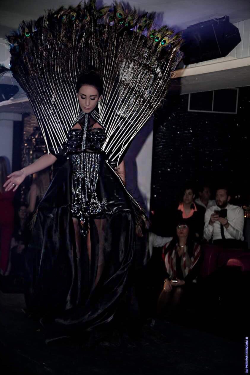 E’ stata una bellissima esperienza. Ho avuto l’onore di essere la modella guest star della serata ed il compito di aprire e chiudere la sfilata. Durante tutta la serata si è respirata un’atmosfera unica, bellissima. E’ stato un grande piacere per me indossare questi straordinari pezzi moda haute couture. Ho aperto la sfilata indossando un abito dello stilista Salvatore Macrì, mentre quello indossato in chiusura è di Dimitar Drari, un abito tempestato di swarovski e piume di pavone.