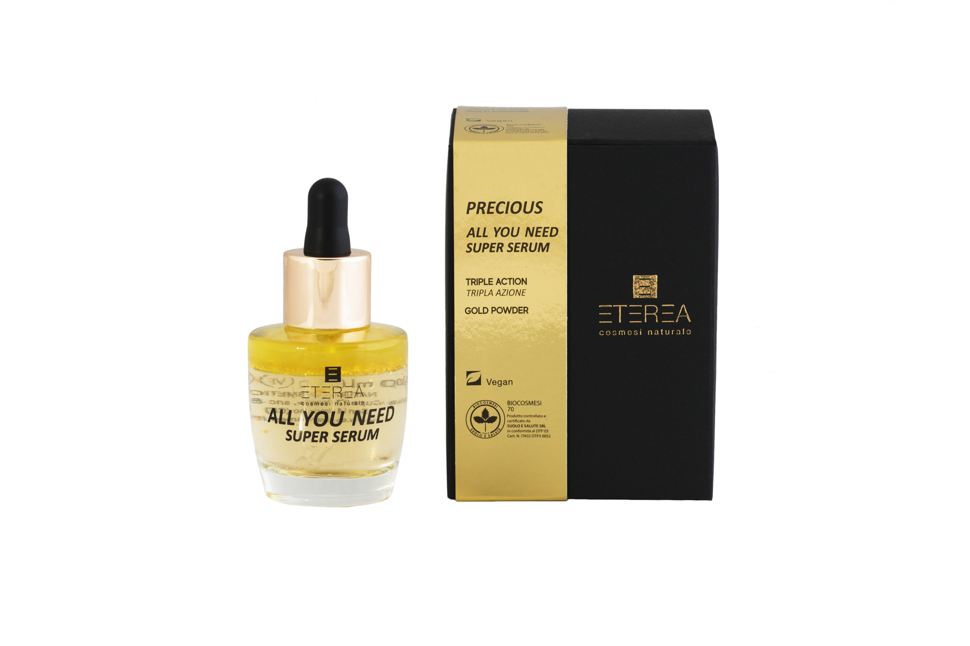“Il siero all’oro ‘All You Need’ è un trattamento sontuoso e multifunzionale a doppia fase idrica-lipidica, che svolge una triplice azione mirata: Illuminante, Lenitiva e Antiage. E’ in grado infatti di apportare proprietà vitali alle cellule, di mantenere il naturale equilibrio della pelle, di nutrire e tonificare rallentando sensibilmente l’avanzare dei segni dell’invecchiamento, rassodando il tono cutaneo e accrescendone l’elasticità.”