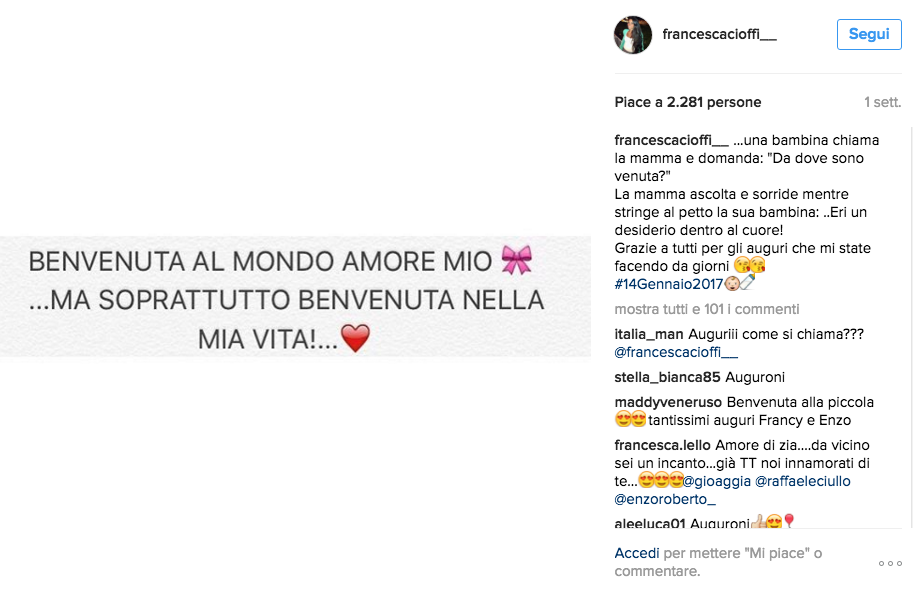 Sui tuoi social non vi è traccia del nome della piccola, come mai?