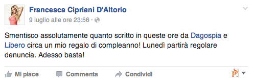 FRANCESCA CIPRIANI VS DAGOSPIA E LIBERO “SCRIVONO CAZZATE”