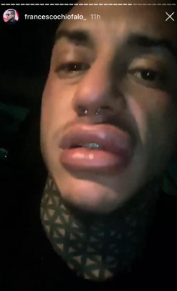 Poche ore dopo Chiofalo è finito in ospedale, a farlo sapere ai suoi fan è stato lui stesso tramite alcune Instagram Stories, nelle quali mostra delle labbra molto gonfie. Visibilmente preoccupato e spaventato ha spiegato: “Guardate cosa mi è successo alle labbra. Guardate le mie labbra. Ca..o, ca..o. Sto andando al pronto soccorso”.
