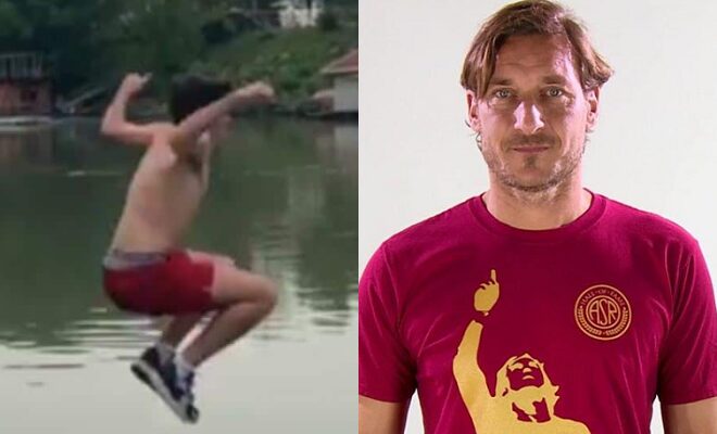 Il ragazzo prima di tuffarsi ha urlato: “Questo video è per Francesco Totti”, al video ha aggiunto come didascalia: “Le promesse al Re vanno mantenute.”