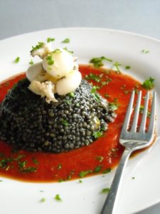 GLUTEN FREE: RISOTTO AL NERO DI SEPPIA CON PASSATA DI POMODORO