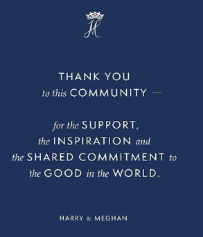 Meghan Markle e il Principe Harry hanno poi comunicato il loro addio ai social con queste parole: “Anche se potreste non vederci qui, il nostro lavoro continua. Grazie a questa comunità, per il supporto, l’ispirazione e l’impegno condiviso per il bene nel mondo. Non vediamo l’ora di riconnetterci presto. Fino ad allora, abbi cura di te e degli altri”.