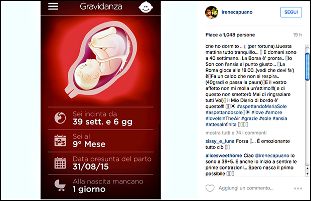 Francesco Arca e la compagna Irene Capuano hanno trascorso l’intero fine settimana in attesa della nascita della primogenita Maria Sole che si fa desiderare. L’ex tronista ha deciso di sfogare la sua tensione allo stadio tifando per la sua squadra del cuore, la Roma, ed è stato inoltre ricompensato per la vittoria dei giallorossi contro la Juventus 2-1. La futura mamma invece cinguetta su facebook: “Ieri notte con la Luna piena son iniziate le prime piccole contrazioni dietro la schiena e sotto la pancia… Ma molto sporadiche tant’è vero che ho dormito… (per fortuna). Questa mattina tutto tranquillo…. E domani sono a 40 settimane… La Borsa è pronta… Io Son con l’ansia al punto giusto… La Roma gioca alle 18.00…(vedi che devi fa’) Fa un caldo che non si respira… (40gradi e passa la paura) E il vostro affetto non mi molla un’attimo!!! (e di questo non smetterò Mai di ringraziare tutti Voi). Il Mio Diario di bordo è questo!!! #aspettandoMariaSole #aspettandosole #love #amore #loveIsInTheAir #grazie #sole #ansia #attesaInfinita”. Anche qualche giorno fa Irene ha commentato una foto postata sul social: “Ok…#Meno3 e tutto