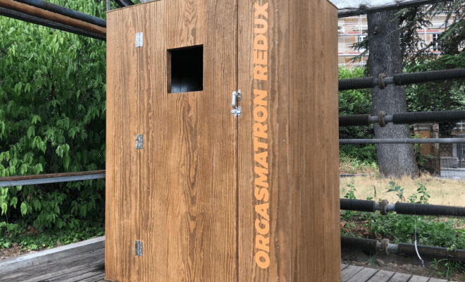 La cabina degli orgasmi è un’esperienza per stimolare la sessualità in modi diversi. Questo l’obiettivo dell’opera Orgasmatron Redux. È realizzata da Norma Jeane alle Serre dei Giardini Margherita, Bologna.