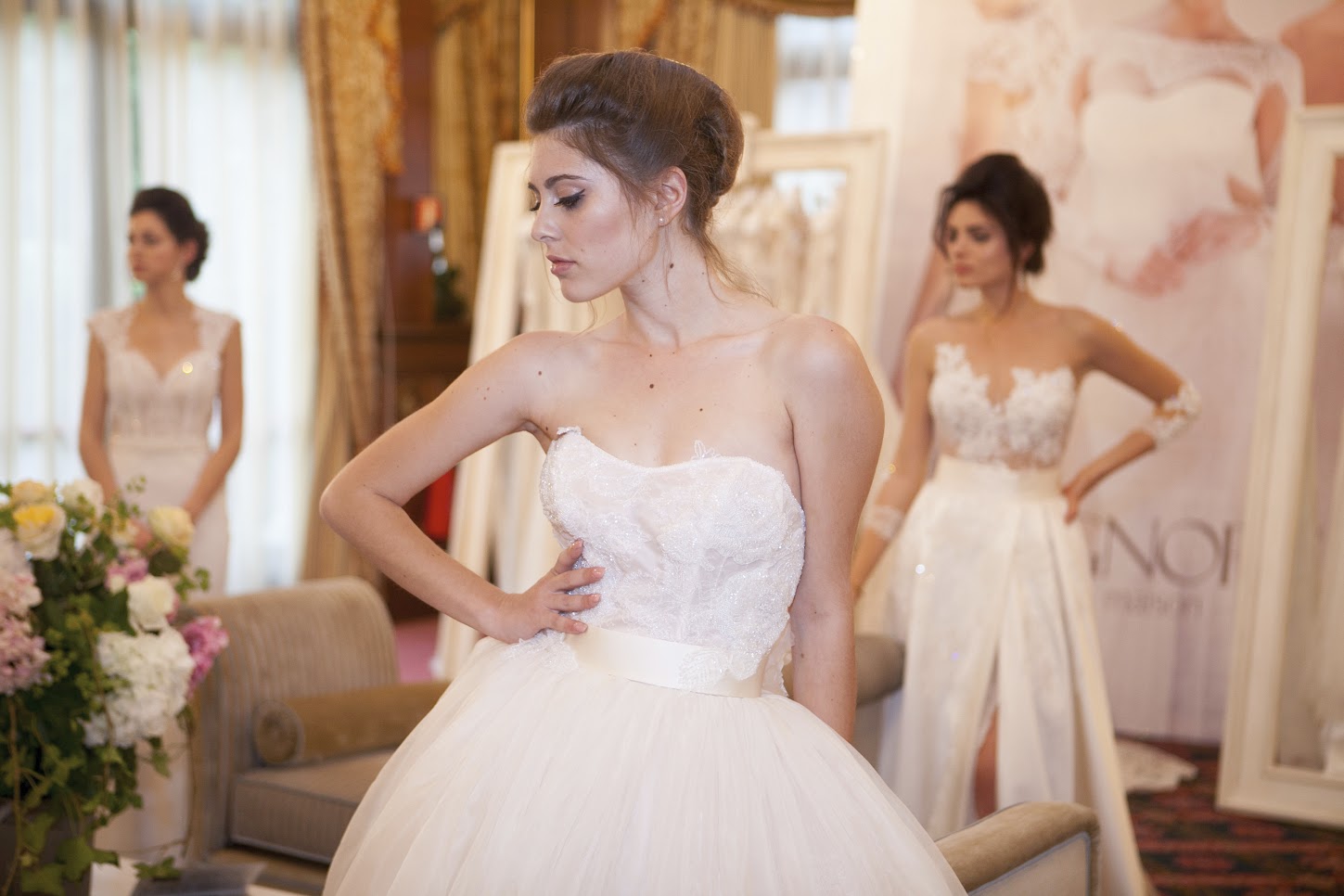 “La novità che caratterizza tutte le collezioni- dichiara l’amministratore di Maison Signore Gino Signore– sono gli abiti “trasformisti” che conquistano le spose più esigenti emozionando tutti gli ospiti. Una soluzione per le spose che non sanno decidersi tra l’abito corto e quello lungo, tra quello più casto e quello più scollato.“ L’abito trasformista, attraverso l’aggiunta o la sottrazione di diversi elementi, può diventare da casto abito per la chiesa a vestito trasgressivo e seducente per il party e la serata.
