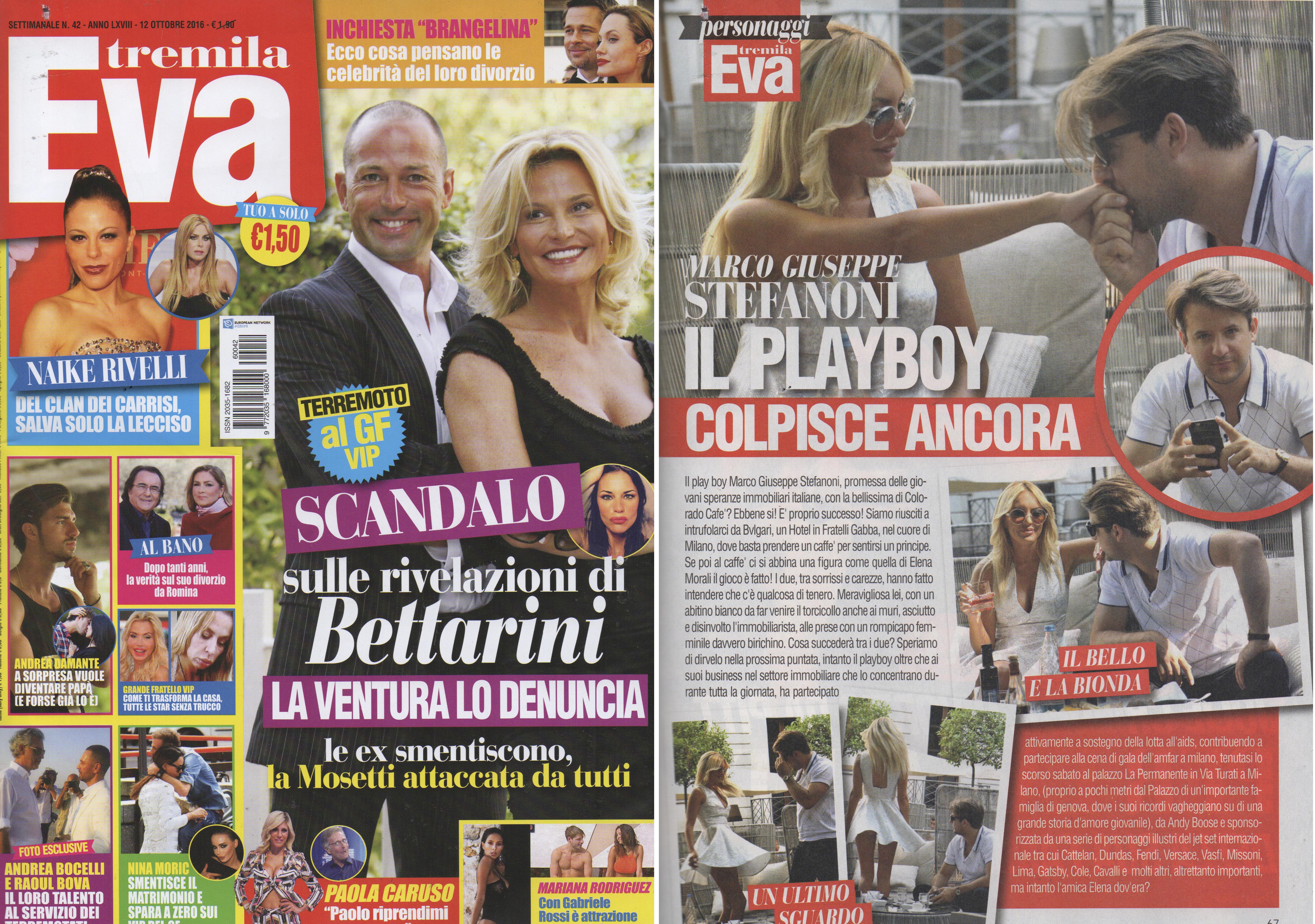 Il play boy Marco Giuseppe Stefanoni colpisce ancora. Promessa delle giovani speranze immobiliari italiane, Marco è stato pizzicato in compagnia della bella di Colorado: Elena Morali. Durante un esclusivo aperitivo da Bvlgari, il prestigioso Hotel nel cuore di Milano, i due ragazzi sono stati avvistati in dolce compagnia mentre, tra un drink e l’altro, sembrano essere in perfetta sintonia. Stupenda lei, fasciata da un abitino bianco, galante e disinvolto lui.