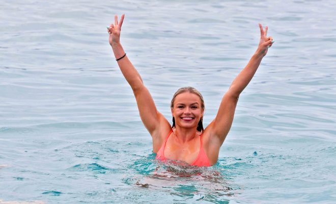 L’atletica travel influencer, Mercedesz Henger in occasione del press tour “ON AIR Golfo Aranci”, l’evento che ha inaugurato la stagione golfarancina, ha approfittato della gita in barca per il suo primo bagno.