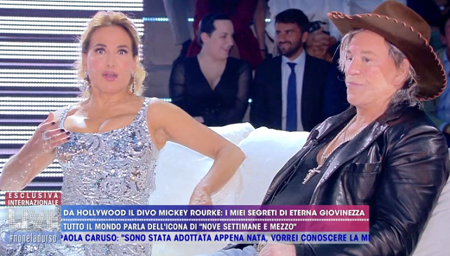 Se a Barbara D’Urso ieri sera non le è preso un colpo, poco ci è mancato. Il piatto forte della serata, Mickey Rourke, ospite a Live su Canale 5, ha lasciato tutti a bocca aperta. Il divo che negli anni ’80 ha fatto sognare intere generazioni, il rude e misterioso protagonista di 9 Settimane e 1/2, è irriconoscibile.