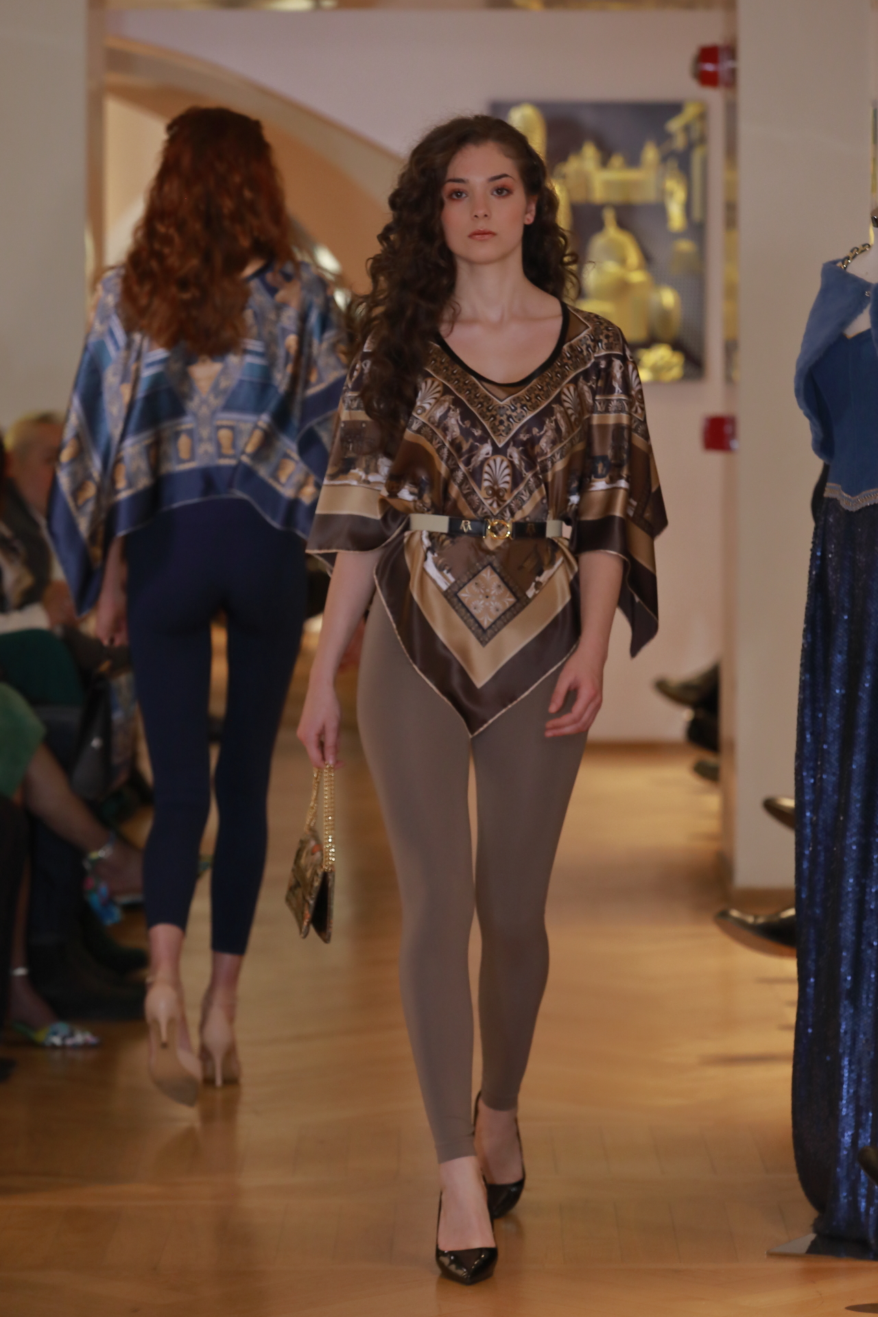 Il suo lavoro trae ispirazione da un viaggio culturale che attraversa i secoli, spaziando dalle antiche ceramiche Italiote della Magna Grecia fino ai mosaici romani, omaggiando il fascino senza tempo dell’arte italiana. A completare ogni look, borse realizzate in seta e pelle, perfettamente coordinate per un risultato armonioso e raffinato.