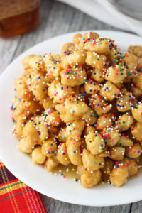Quando il miele si sarà solidificato, togliete delicatamente il barattolo dal centro del piatto e servite gli struffoli. Questa è la ricetta tradizionale caratterizzata dall’assenza di lievito e struffoli particolarmente croccanti. Nel caso si preferiscono più gonfi, si può aggiungere all’impasto un pizzico di bicarbonato o di ammoniaca per dolci. In questo caso, la pasta deve riposare alcune ore.