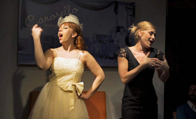 Per ricordare i 60 anni dalla prima puntata di Carosello, la trasmissione Rai che ha trasformato il commercio in occasione di arte e spettacolo, cultura e storia, Il Margutta Vegetarian Food & Art e la D.d’Arte ha proposto una grande cena teatrale, “Carosello insegna”, con Ottavia Bianchi, Ketty Roselli e Giorgio Latini, con la regia di Francesco Sala e le musiche al pianoforte di Antonio Nasca, da un’idea di Tina Vannini e Francesca Barbi Marinetti.