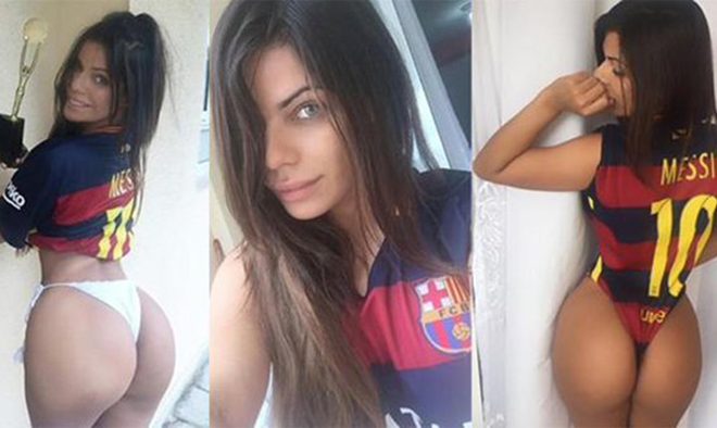Maglietta del Barcellona e nient’altro, ecco come ha posato la Cortez per questo omaggio davvero hot. Le foto, che ovviamente mettono in bell’evidenza il generoso lato B di Miss Bum Bum 2015, hanno in pochissime ore fatto il giro della rete allietando, non solo la giornata dei suoi oltre 200 mila seguaci, ma anche quella di spettatori che hanno, certamente, gradito la sorpresa. Suzy, ovviamente, non è nuova a questi scatti, il suo instagram pullula, infatti, di foto del suo sedere che totalizzano, ogni volta, migliaia e migliaia di like arrivando al punto di paragonare la Suzy alla più celebre delle sorelle Kardashian, Kim, famosa, appunto, per il suo generoso e super cliccatissimo lato b.