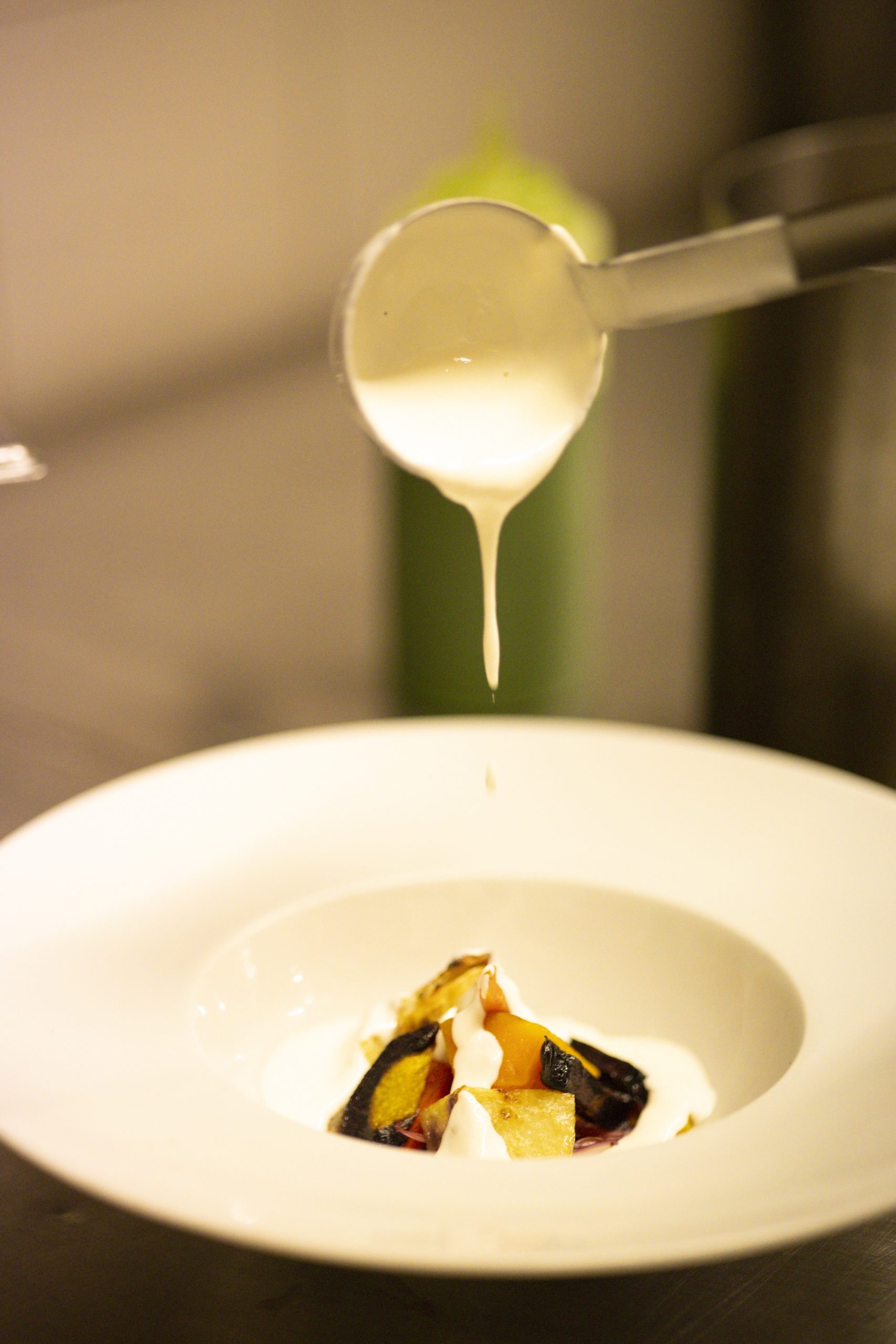 – Risotto rivoluzionario: Mime Kataniwa propone un Risotto al Taleggio e bisque di canocchie, burro acido e mizuna, dove il formaggio garantisce una mantecatura perfetta.