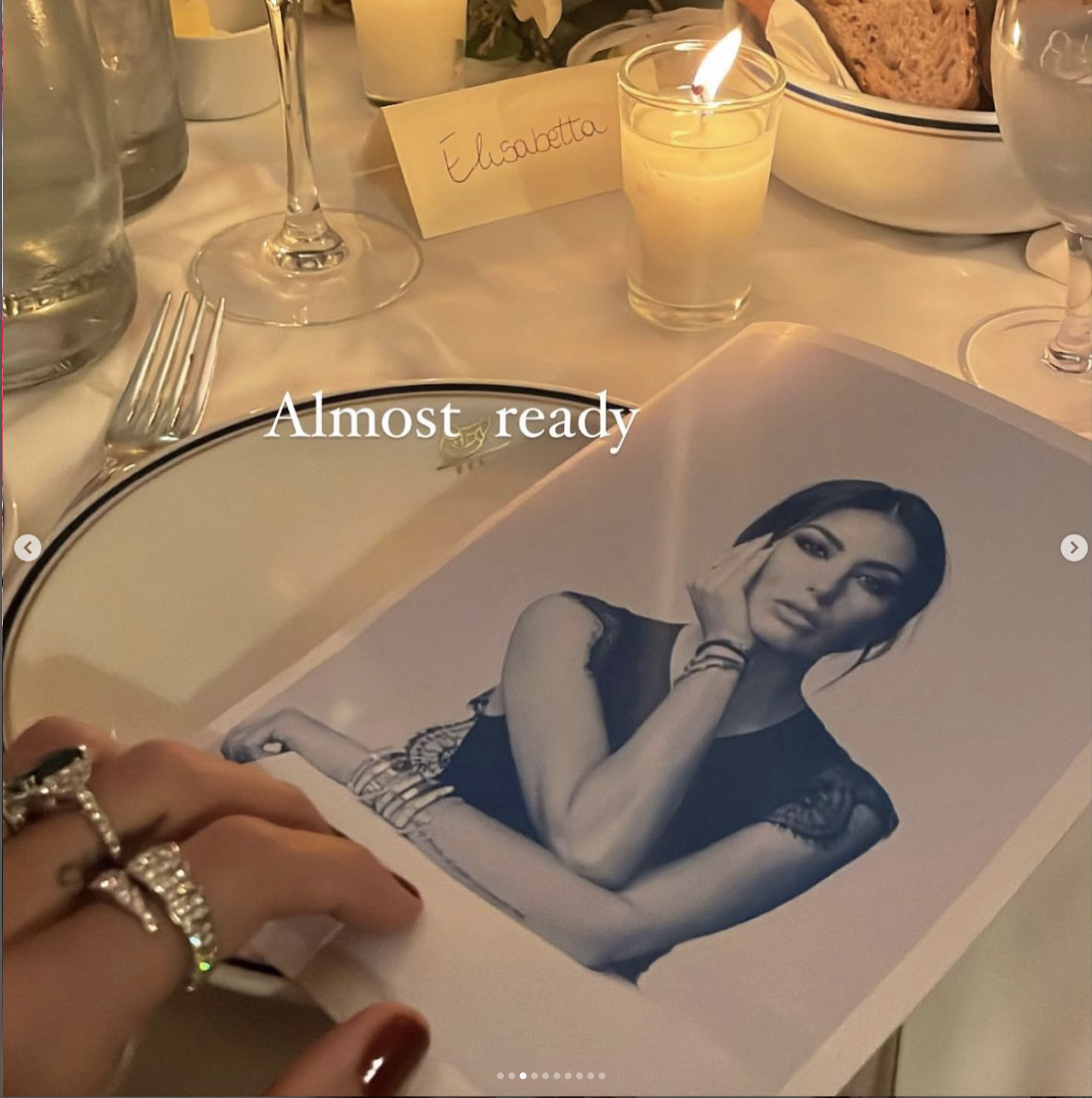 Per festeggiare il suo compleanno Elisabetta ha organizzato una cena en placée. Sul menu, ci ha messo letteralmente la “faccia”. Ogni invitato infatti, ha trovato al proprio posto, una fotografia in bianco e nero della showgirl, con il menù della serata all’interno.