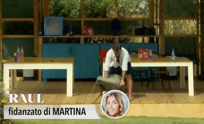 In preda alla rabbia quando è uscito dal pinnettu Raul ha lanciato una bottiglia d’acqua, ha anche scaraventato una sedia a terra e l’ha presa a calci. Il fidanzato di Martina si è anche ferito durante uno scatto di rabbia, sfogandosi con Tony ha poi detto: “Ma è giusto che una persona ti porta a fare queste cose? Mi fa diventare pazzo così”. Il fidanzato di Jenny ha risposto: “Ti sei ferito perché ci sono le sedie robuste, ma l’hai piegata! Vuoi che chiamo un medico così ti disinfetta?”