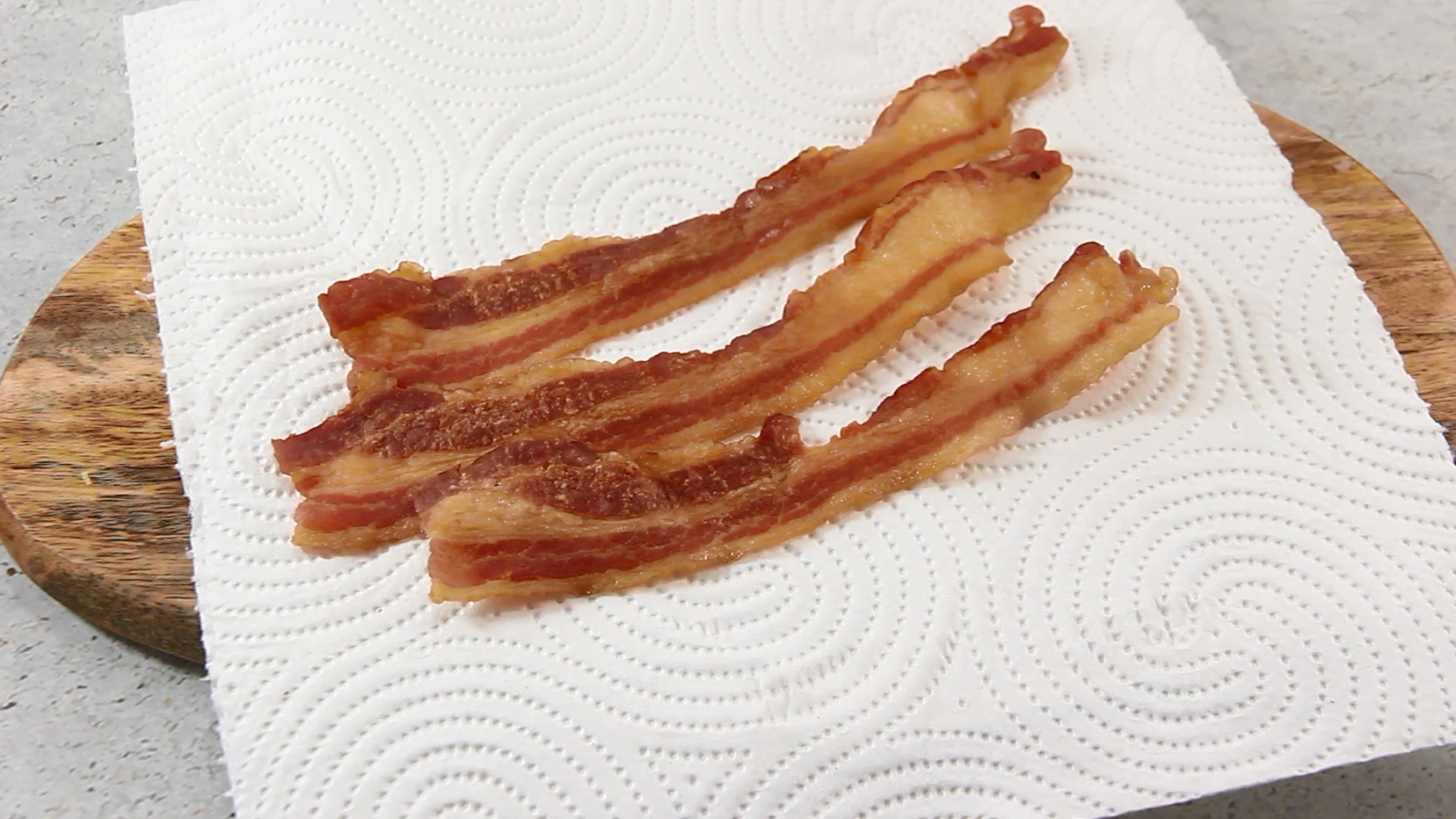 Durante il tempo di cottura della zuppa, eliminiamo il grasso (se presente) dalle fettine di speck e tagliamolo a striscioline sottili. Facciamolo rosolare in una padella antiaderente cercando di evitare che le striscioline si sovrappongano.